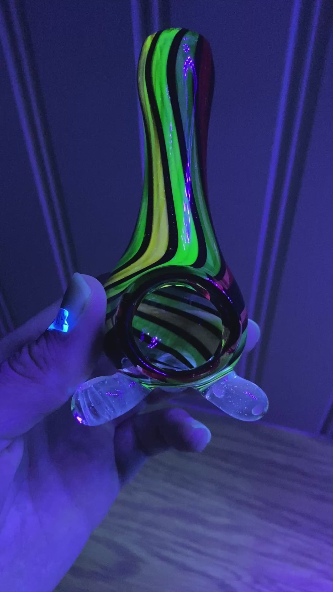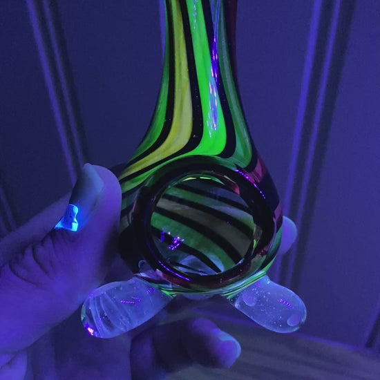 This glass Incense burner is fully UV with galaxy black swirls. It can be seen being made in my new video about Choose Happy Glass! Put an incense cone or match inside and watch the aroma billow out the top.